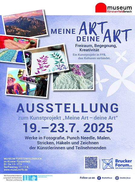 Bei der Vernissage vom 19. bis 23. Juli 2025 waren Werke in Fotografie, Punch Needle, Malen, Stricken, Häkeln und Zeichnen der Künstlerinnen und Teilnehmenden im Museum FFB zu sehen. Musikalisch wunderbar begleitet wurde die Ausstellung von Adrian Ingerl. Lassen Sie sich hier mit einigen Impressionen der Ausstellung von den Werken unseres kreativen und integrativen Projekts inspirieren. Im Herbst geht es weiter mit dem Projekt ...